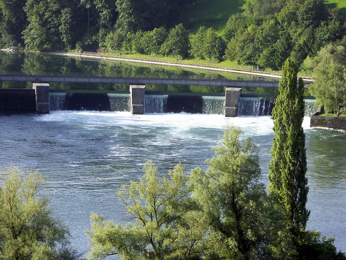 Niederdruck-Laufkraftwerk am Rhein, nutzt 10,5 m Höhenunterschied der Rheinschlaufe